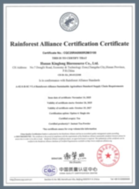 | Standaard: | Rainforest Alliance Certification Certificate |